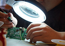 Мастер сервисного центра делает ремонт: заменяет испорченную часть исправной фирменной частью
